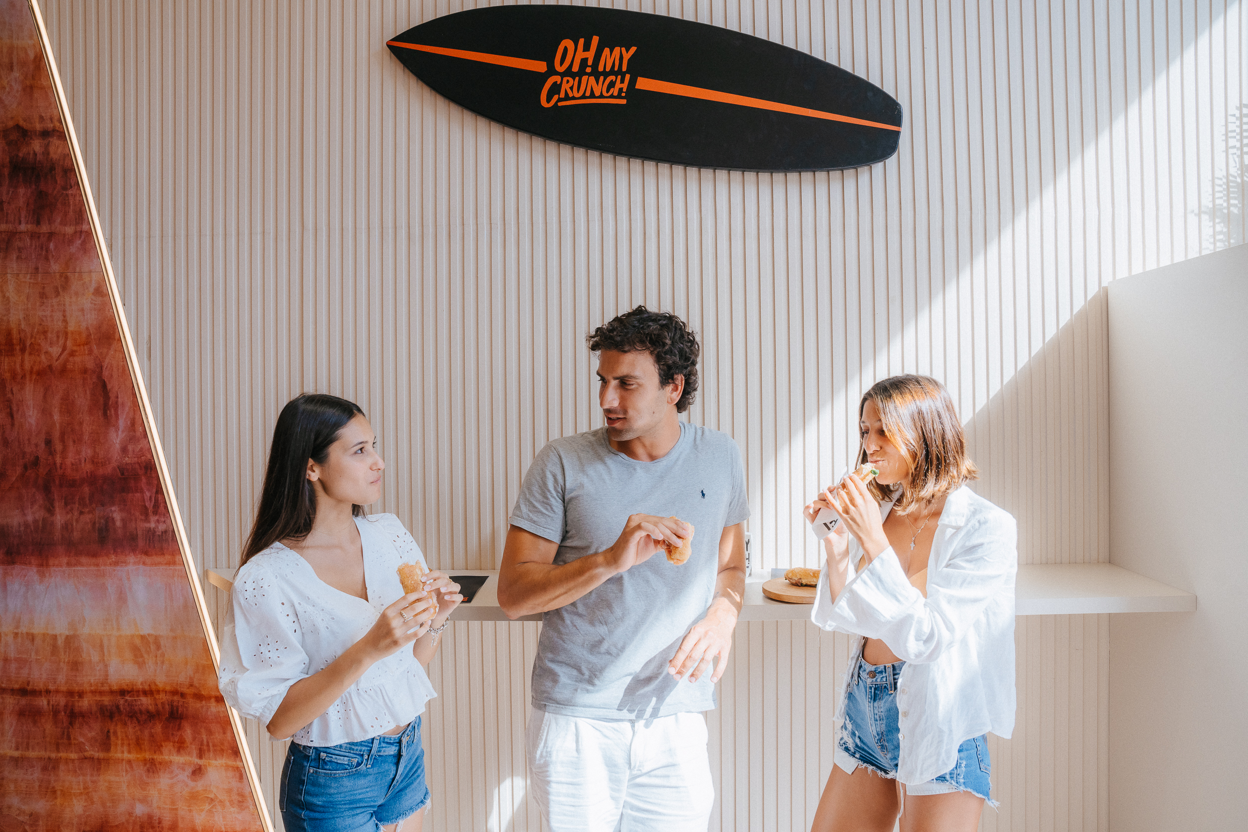The flagship established design language now extending to Milan and Saint Tropez. Each location adapts the core concept to its specific context while maintaining unmistakable OH MY CRUNCH identity.