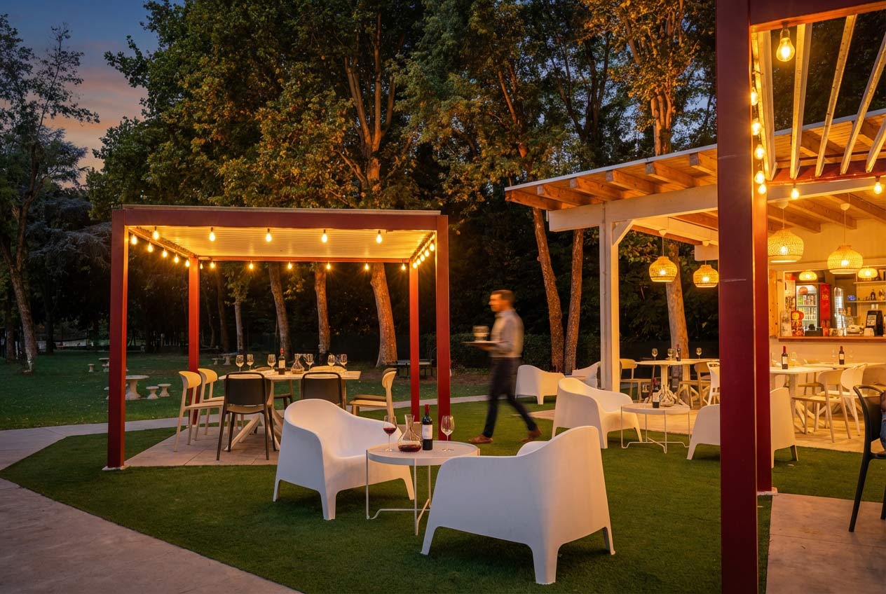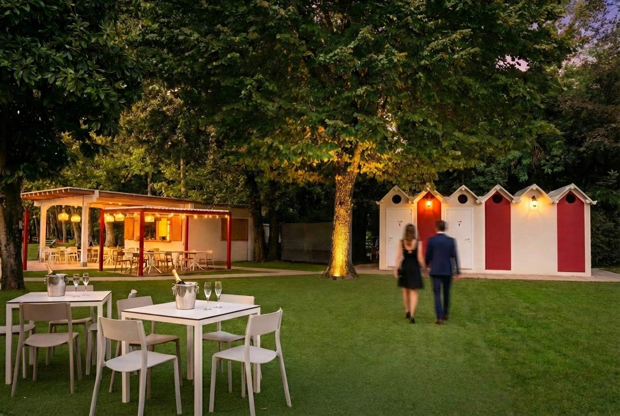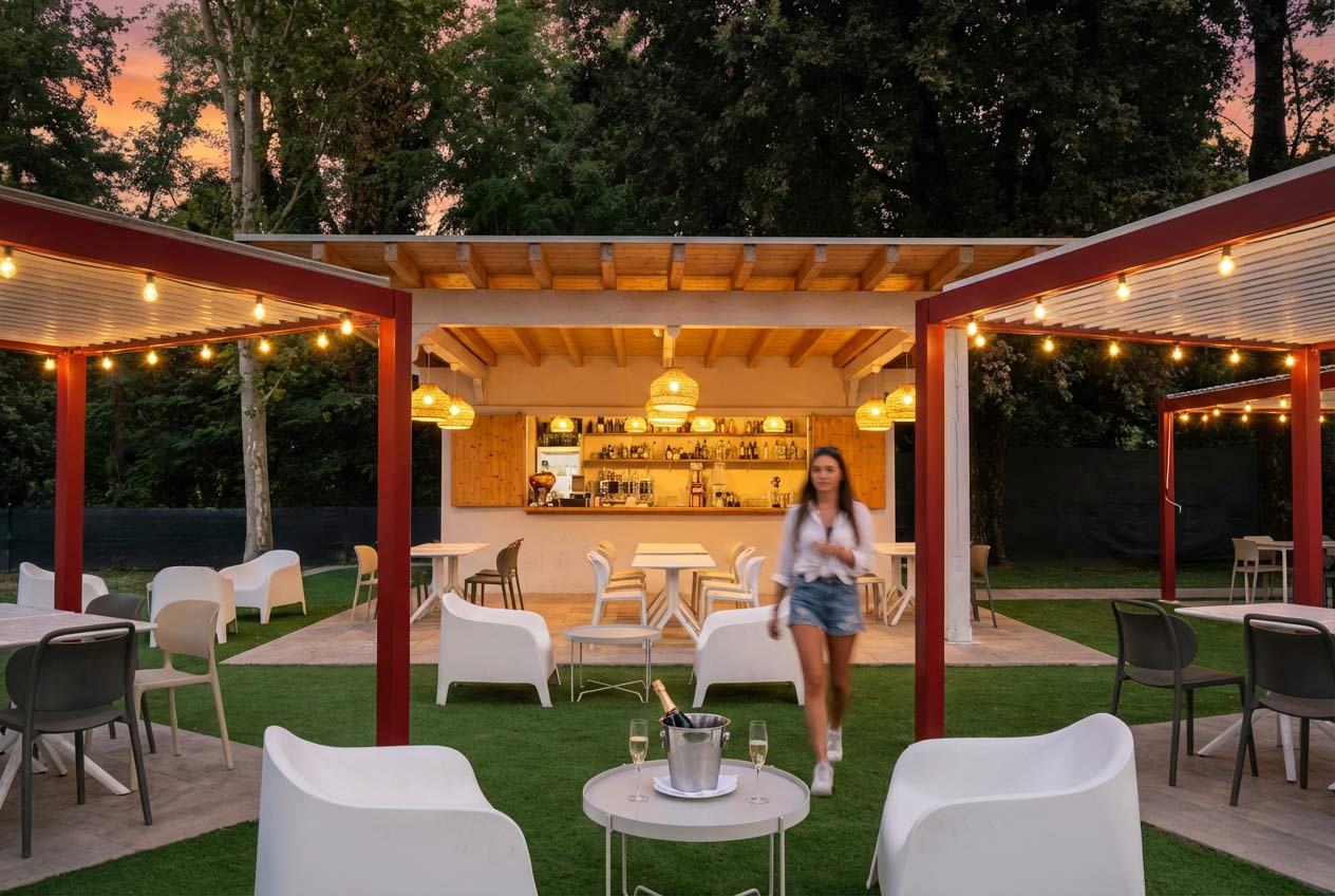 L’illuminazione esterna completa l’esperienza, valorizzando gli spazi anche dopo il tramonto e trasformando il parco in un luogo dove restare, non solo da attraversare.